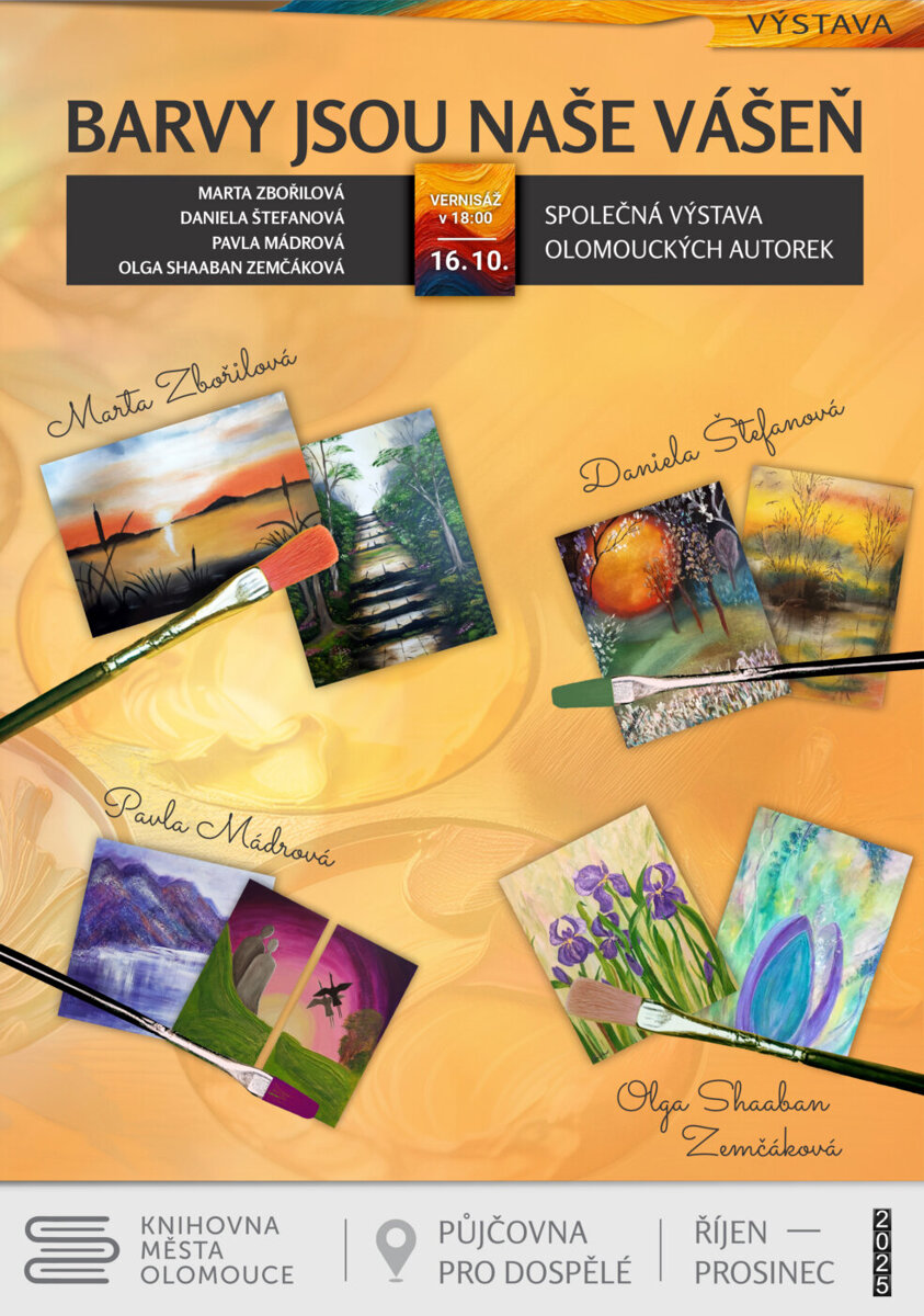 Společná výstava olomouckých autorek Marty Zbořilové, Daniely Štefanové, Pavly Mádrové a Olgy Shaaban Zemčákové.