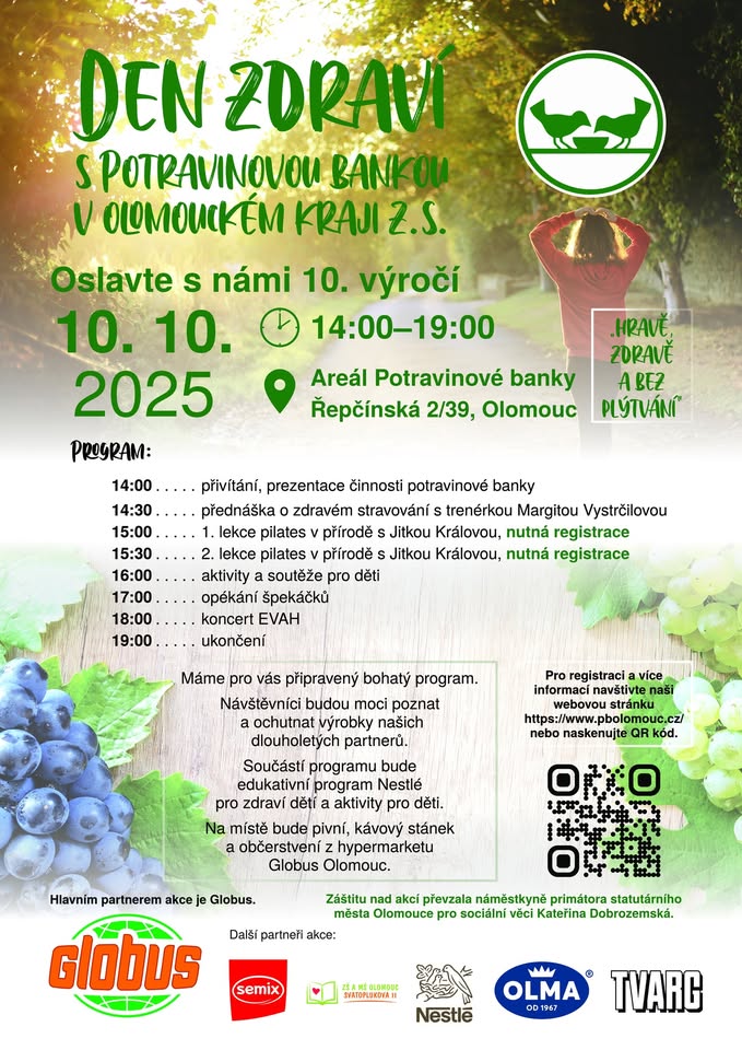 Potravinová banka v Olomouckém kraji slaví 10 let! Při příležitosti oslav chystá podzimní akci určenou pro širokou veřejnost. Připraven je bohatý program včetně aktivit pro děti.
