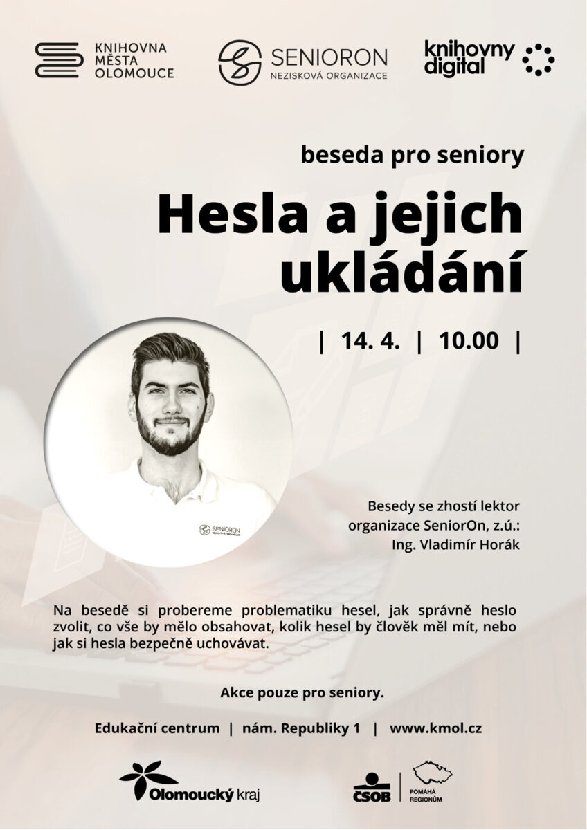 Beseda bude věnována problematice hesel. Povíme si, jak správně heslo zvolit, co vše by mělo obsahovat, kolik hesel by člověk měl mít, nebo jak si hesla bezpečně uchovávat.