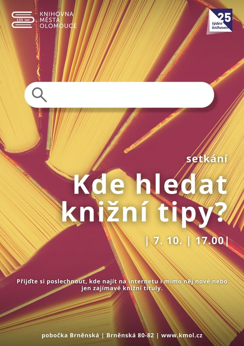 Přijďte si poslechnout, kde najít na internetu i mimo něj nové nebo jen zajímavé knižní tituly.