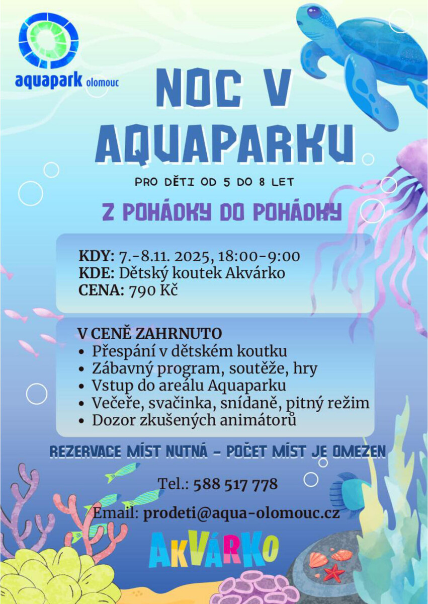 Děti ve věku 5 až 8 let se mohou těšit na další dobrodružnou noc v dětském koutku Akvárko. Kouzelná noc se koná v termínu 7. až 8. listopadu.