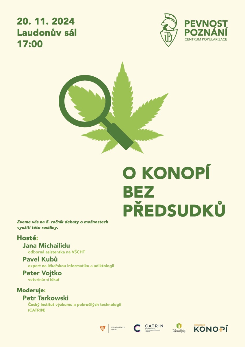 5. ročník debaty O konopí bez předsudků. Diskuzi bude opět moderovat Petr Tarkowski z vysokoškolského ústavu CATRIN a Výzkumného ústavu rostlinné výroby, kde se již od roku 2015 věnuje výzkumu konopí.