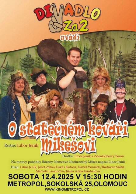 Mikeš je kovářský synek, který se vydá do světa na zkušenou. Cestou se k němu připojí silák Matěj a společně se rozhodnou najít dvě královské dcery, které už měsíce nikdo nespatřil. Pokud se jim to má podařit, budou muset překonat množství nástrah a pokušení. Přijďte jim v jejich putování držet palce, nudit se určitě nebudete! Mikeš s Matějem, vousatá babice, pan král, princezny, Dračí pán a spousta dalších postav spolu s krásnými písničkami vám k tomu v této veselé činoherní pohádce nedají čas.