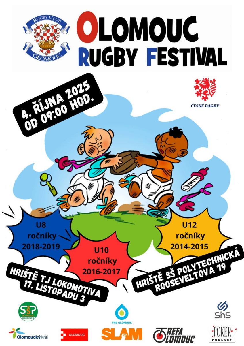 Už v sobotu 4. října od 9:00 se Olomouc promění v ráj pro malé rugbisty a jejich fanoušky. Čeká vás jubilejní 10. ročník festivalu, který je oslavou pohybu, týmového ducha a dětské radosti.