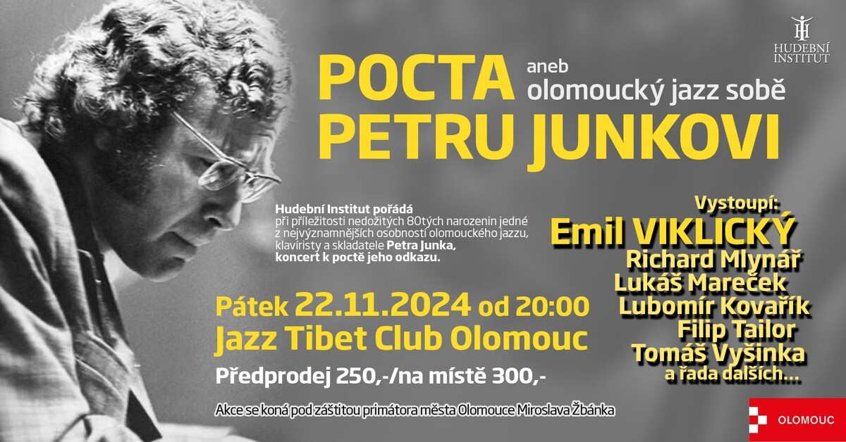 Legendární olomoucký jazzový klavírista, skladatel a pedagog Petr Junk by v letošním roce oslavil 80 let. Při této příležitosti se Hudební Institut rozhodl uspořádat koncert k jeho poctě – a bude to pocta ve velkém stylu! Na mimořádnou nabídku kývl nejen jeho dlouholetý spoluhráč, zlínský pedagog a kytarista Lubomír Kovařík, ale také Junkův dlouholetý jazzový souputník, Emil Viklický.