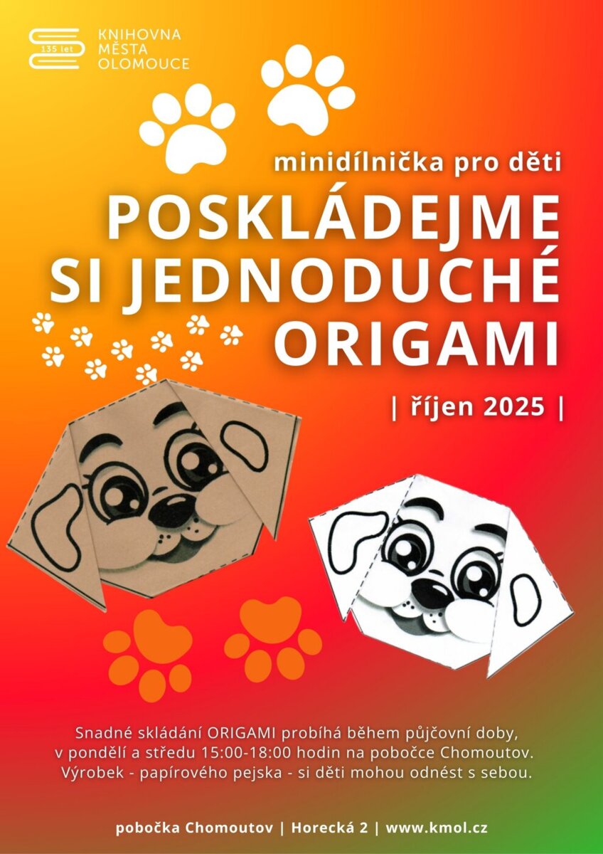 Snadné skládání origami probíhá během půjčovní doby, v pondělí a středu 15:00 až18:00 hodin na pobočce Chomoutov.
