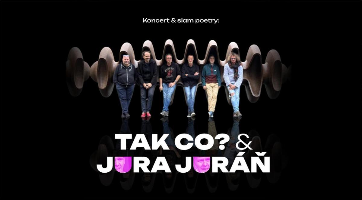 TAK CO? odehrají průřez novou tvorbou, do kterého svými vstupy zasáhne Jura Juráň – desetinásobný finalista mistrovství ČR ve slamu, psychoterapeut, fotograf životních absurdit, prodavač designových rakví i vypravěč kreslených vtipů. Propojení původní hudby a originálního slamu vytváří jedinečnou synergii, takže se na konci nikomu nechce odcházet domů.