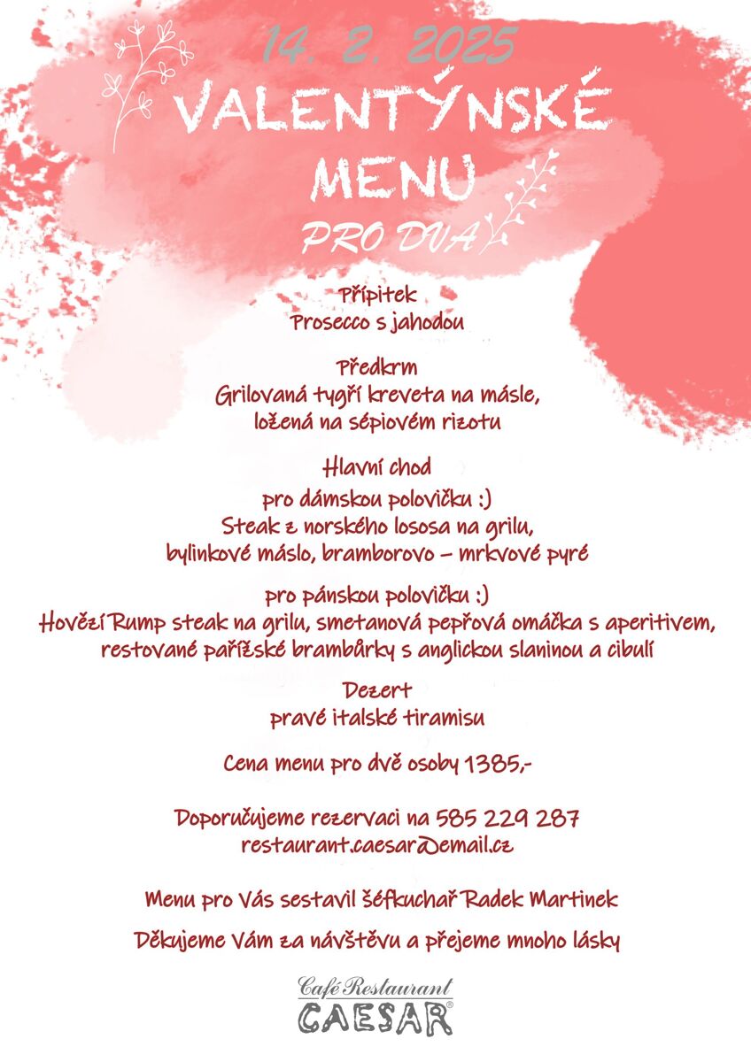 Také Café Restaurant Caesar na Horním náměstí chystá Valentýnské menu.
