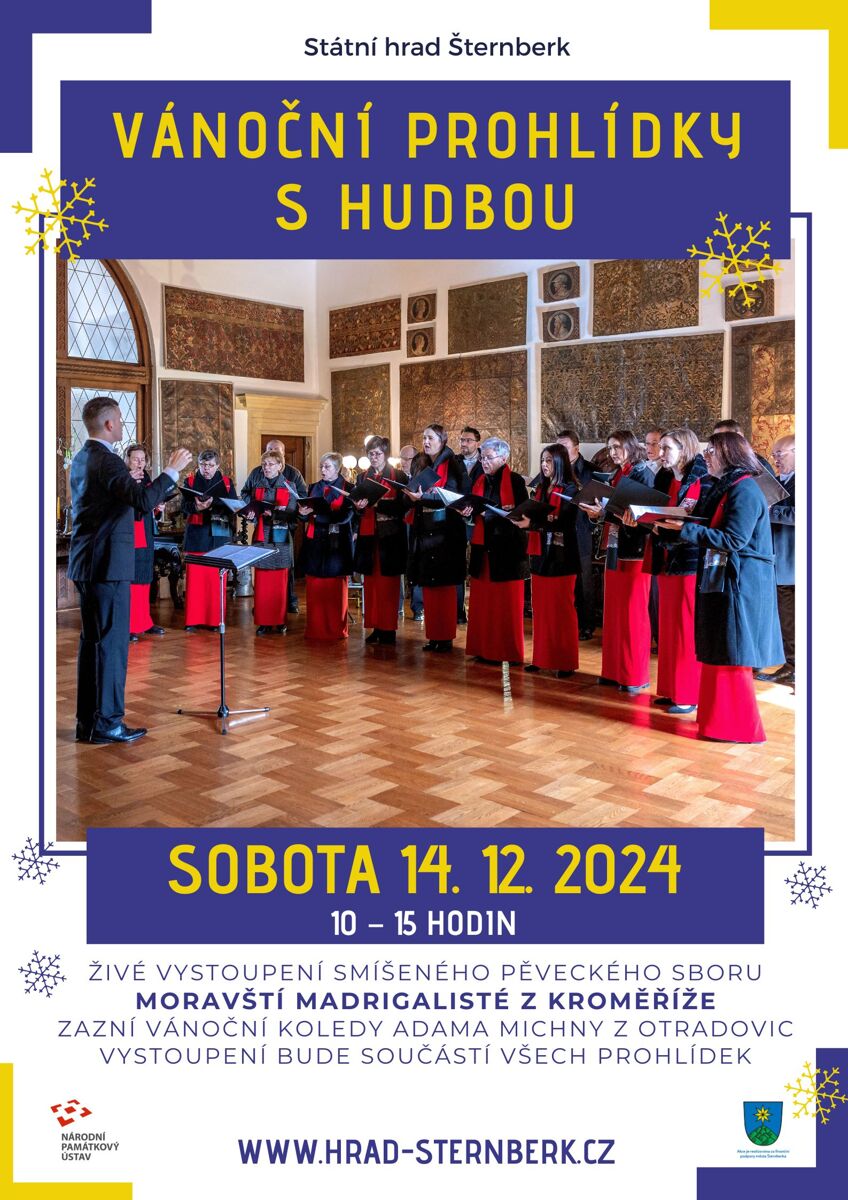 Prohlídky ožijí hudebním vystoupením, které se uskuteční v prostorách Rytířského sálu. V jedinečné atmosféře renesančních interiérů se vydáme vstříc radostnému očekávání, které tato doba přináší. To vše prostřednictvím koled z pera raně barokního skladatele ze 17. století, Adama Michny z Otradovic, v podání smíšeného pěveckého sboru Moravští madrigalisté z Kroměříže. Hudební vystoupení bude součástí všech prohlídek hradu.