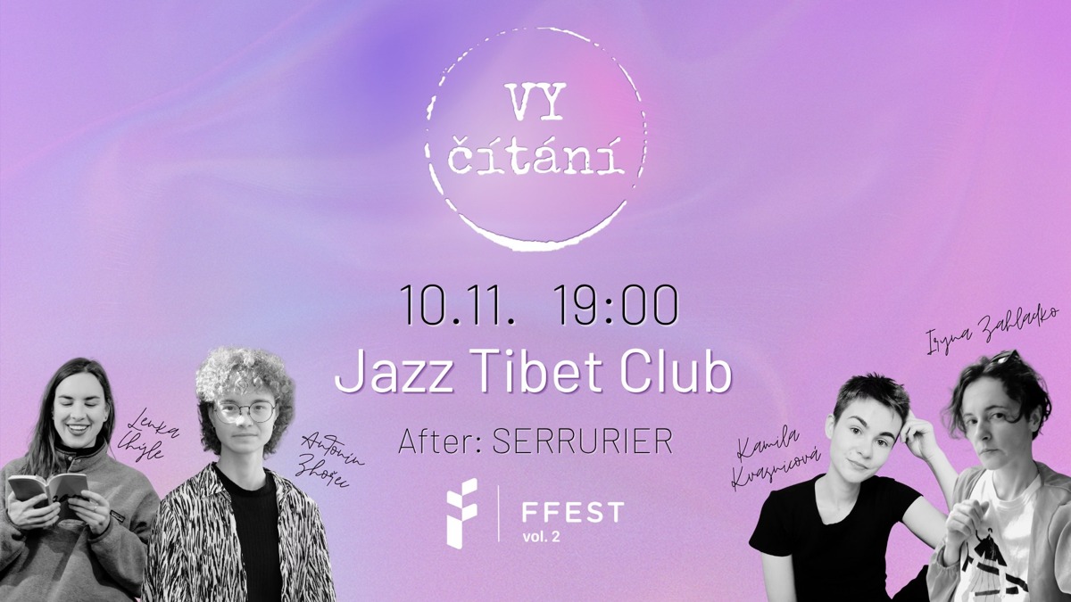 Druhý ročník festivalu studentské kreativity je tady a speciální Vy.čítání s ním. Projekt autorského čtení Vy.čítání studentek psychologie, který od roku 2022 spojuje začínající i zavedené autorstvo, se poprvé za podpory FFestu podívá do legendárního olomouckého Jazz Tibet Clubu.