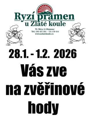 Zveme vás na zvěřinové hody do podniku Naša Hospoda Charváty. Rezervace místa na 777 072 689