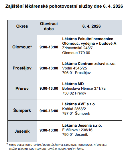 Velikonoční svátky jsou tady a ani tentokrát nemusí mít lidé obavy, že by si v případě nutnosti nemohli koupit potřebné léky. Olomoucký kraj společně s lékárenskou komorou zajistil, aby v pondělí 6. dubna fungovaly lékárny ve všech pěti okresech.