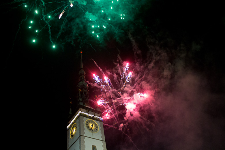 Oblohu nad Horním náměstím rozzářil velkolepý mikulášský ohňostroj.
