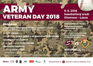 Army Veteran Day 2018 pořádají Skokani Olomouc ve spolupráci s Vojenskou nemocnicí Olomouc, Centrem podpory speciálních sil Olomouc, Centrem zdravotních služeb v Prostějově, Posádkovým velitelstvím v Olomouci a na místě budou i zástupci Československé obce legionářské. "Akci tohoto druhu děláme vůbec poprvé a moc se na ni těšíme. Spolupráce se jmenovanými subjekty je vynikající," řekl Václav Voják, předseda baseballového oddílu Skokani Olomouc.