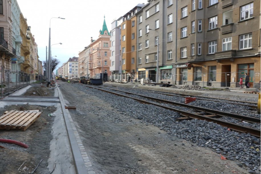 Auta i tramvaje se na Masarykovu třídu vrátí v létě. Rejnok by měl otevřít v červenci