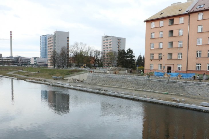Průběžně pokračuje i budování nábřežních zdí v okolí mostu. Situace se zásobováním stavby žulou se sice v posledních týdnech zlepšila, nicméně několikaměsíční zpoždění dodávek kamenů způsobené epidemií koronaviru se daří dohnat jen částečně. "Zhotovitel stavby intenzivně jedná s dodavatelem kamene o zvýšené frekvenci dodávek. V tuto chvíli tak lze potvrdit, že náplavka na pravém břehu bude dokončena v řádném termínu, tedy v září. Na levém břehu však stále hrozí, že dokončení kamenných obkladů zdí bude mít několikatýdenní zpoždění. Nadále tak jednáme se zhotovitelem, aby ke zpoždění této části stavby pokud možno nedošlo," říká investiční ředitel Povodí Moravy Tomáš Bělaška. "Na dokončení obkladů levé nábřežní zdi a rovněž na dokončení přeložky plynu v ulici Nábřeží závisí i navazující opravy vozovky a chodníků," upozorňuje investiční náměstek primátora Martin Major.