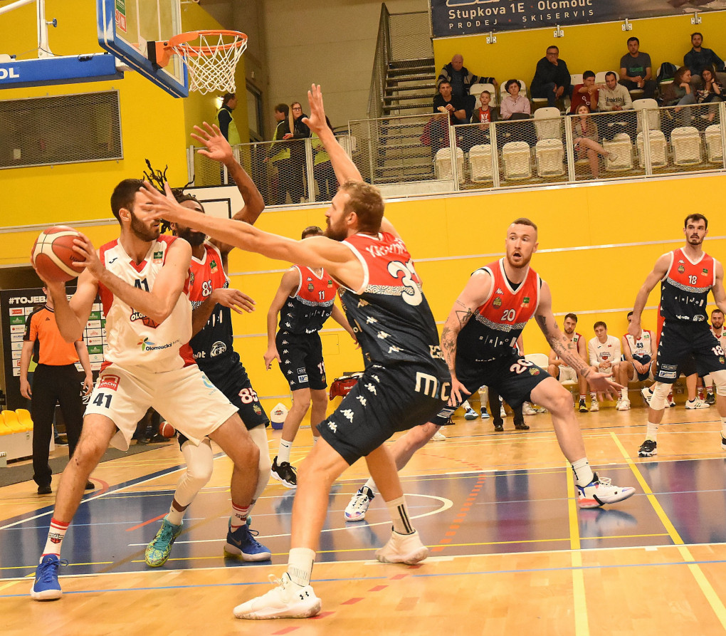 Na začátku zápasu zářil především Vučkovič, který se postaral o vedení 10:5 ve 4. minutě rovnými osmi body. Vzápětí vyzval ke skórování ideální přihrávkou Štěpána a Brno si bralo oddechový čas. Pak se oba soupeři střelecky odmlčeli a skóre se pak měnilo až v 8. minutě. Hosté snížili až na 11:12, koncovka čtvrtiny však patřila Olomoucku. Na 17:11 upravil až po čase třemi trestnými hody Feštr po zbytečném faulu Bálinta.