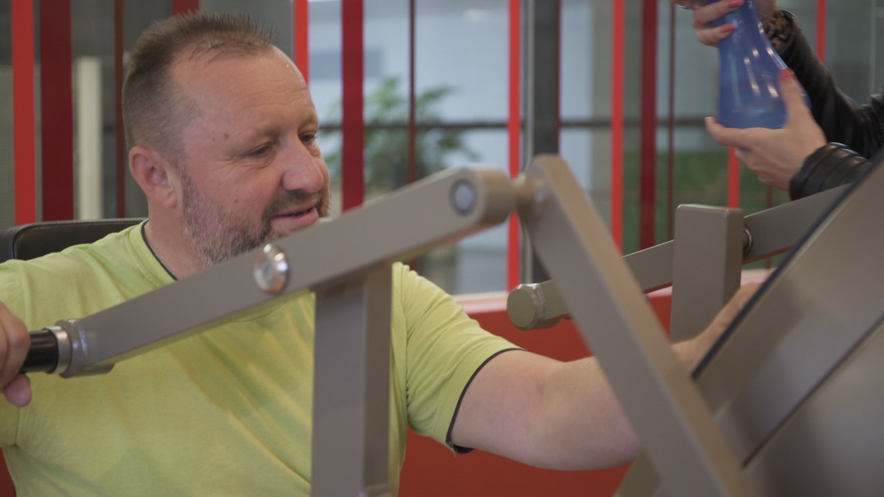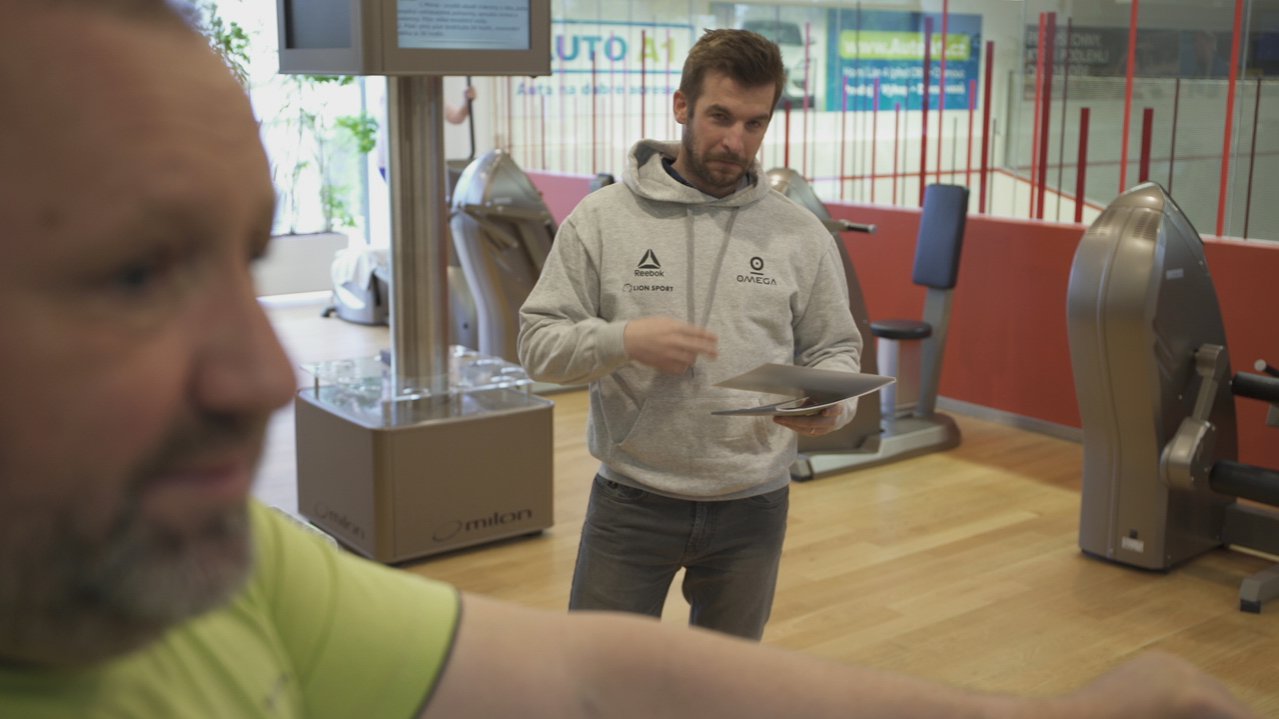 Když byste si náhodou mysleli, že se Jiří Polák v Omeze při natáčení vážně tak zapotil, upozorňujeme vás na rozprašovač s vodou, kterým Zuzana Doleželová držela míru "propocení" pod kontrolou. Ale abychom Jirkovi nekřivdili - faktem je, že sem ve svém volnu chodí pravidelně a rád cvičit.