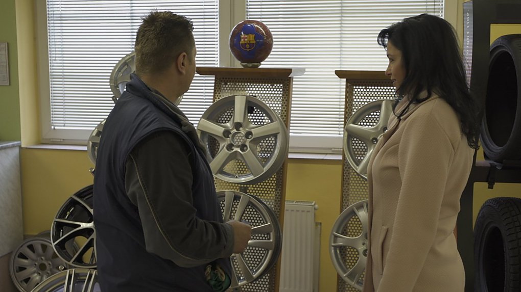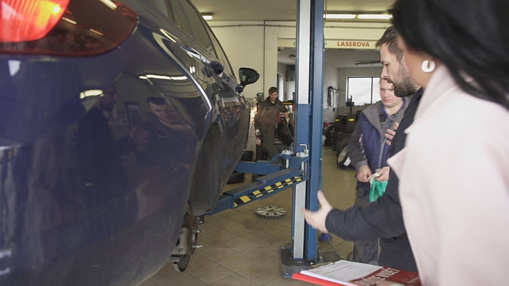 Při natáčení v AUTO PNEU Tichý zněl úkol pro Ditu Kalábovou jasně - obleč se naprosto kontrastně k tomu, že vstupuješ do chlapského království, kde dostaneš do ruky všemožné nářadí. Majiteli auta garantujeme, že i když Dita utahovala šroub, bylo to vážně jen naoko.