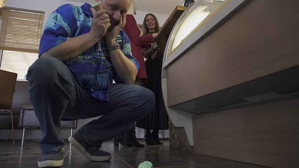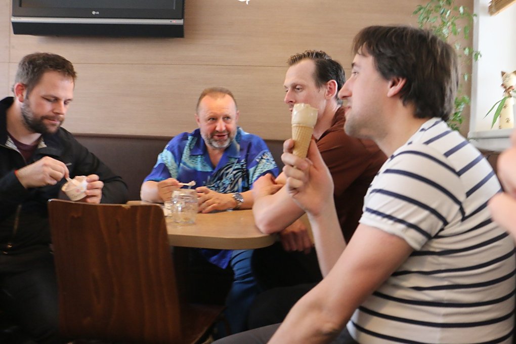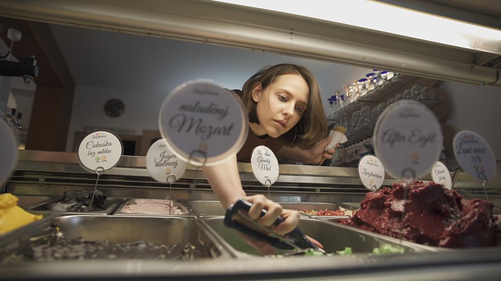 Zmrzlinárium. Místo, kde to musí každý milovat... Jestli sem chodíte, pak určitě dobře víte, jak je zdejší ledová pochoutka skvělá. A na Jiřího Poláka čekal úkol, který se ukázal jako velmi obtížný - celou porci pistáciové měl z kornoutku uvěřitelně vyklopit na podlahu... Co vám budeme povídat, zmrzlina se vzdát rozhodně nehodlala, točilo se to mockrát (nebojte, pořád dokola se recykloval jen jeden kopeček). A na závěr jsme si zmrzlinu vychutnali všichni. A Zuzaně Doleželové během hovoru celý kopeček spadl do klína. Všechny v tu chvíli zajímalo, jestli to někdo stihl natočit nebo aspoň vyfotit. Nestihl. Naštěstí s sebou Zuzka měla náhradní oblečení.