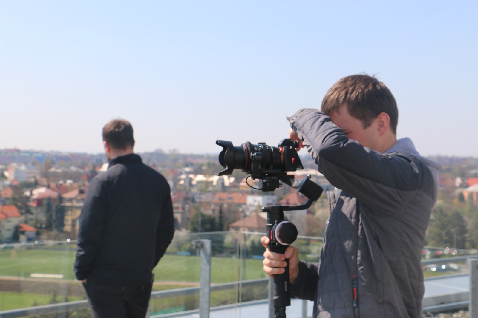 Na Svatém Kopečku bylo velmi větrno. Létaly nám vlasy, sukně šaty... Celí promrzlí jsme čekali, až si dá obloha alespoň trochu říct a nebe přestane být ocelově šedé. Podařilo se. Naštěstí není vidět ta husí kůže, kterou jsme všichni měli. Ale stálo to za to! Poslední záběry byly natočeny, ta větší část práce čekala na Pixato Creative...