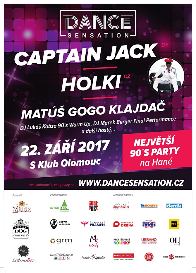 Olomouc i okolí už netrpělivě vyhlíží pátek 22. září. Proč? Do S Klubu dorazí německé duo Captain Jack, populární dívčí skupina Holki, slovenský moderátor a Dj Matúš GOGO Klajdač a taky Dj´s Radia Haná s tím nejlepším hudebním výběrem z 90. let.