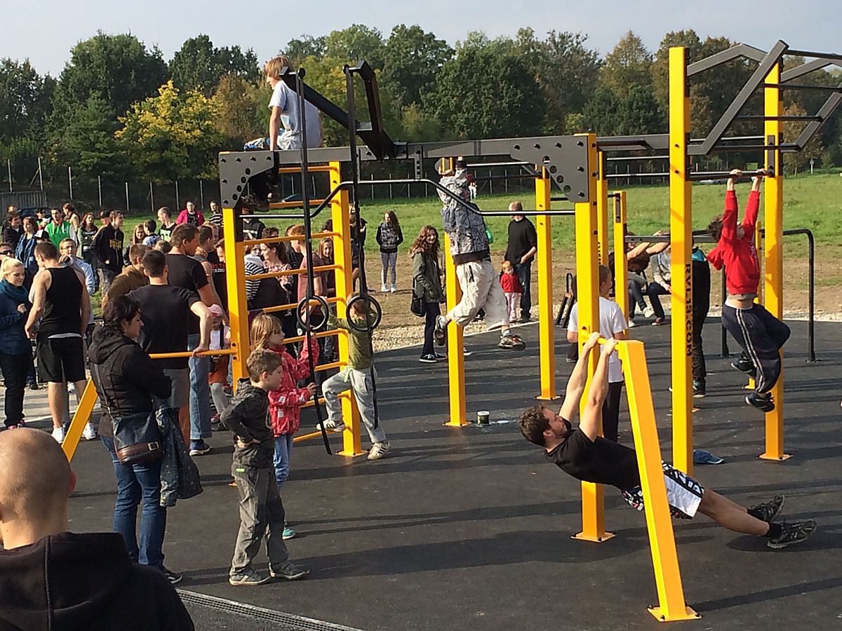 Streert work sportoviště funguje jako venkovní posilovna, která využívá váhy vlastního těla.
