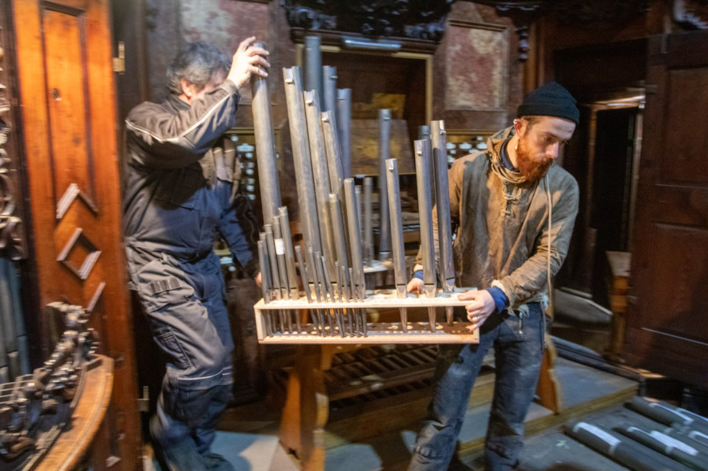 Rozebírat varhany na jednotlivé píšťaly začali pracovníci už v prosinci 2020. K restaurátorům do Slovinska však míří až nyní...