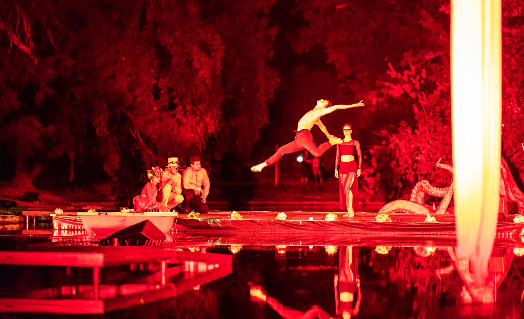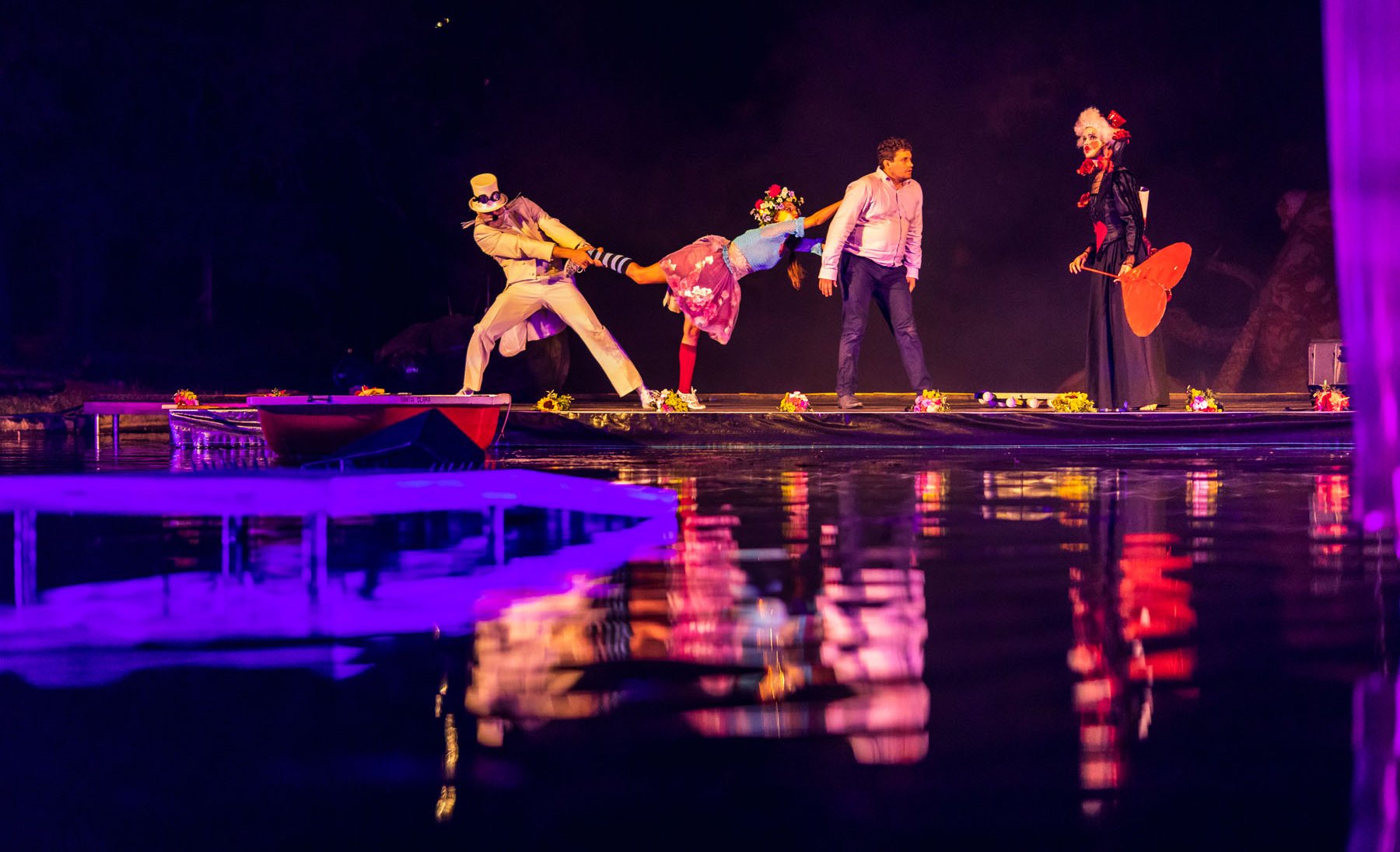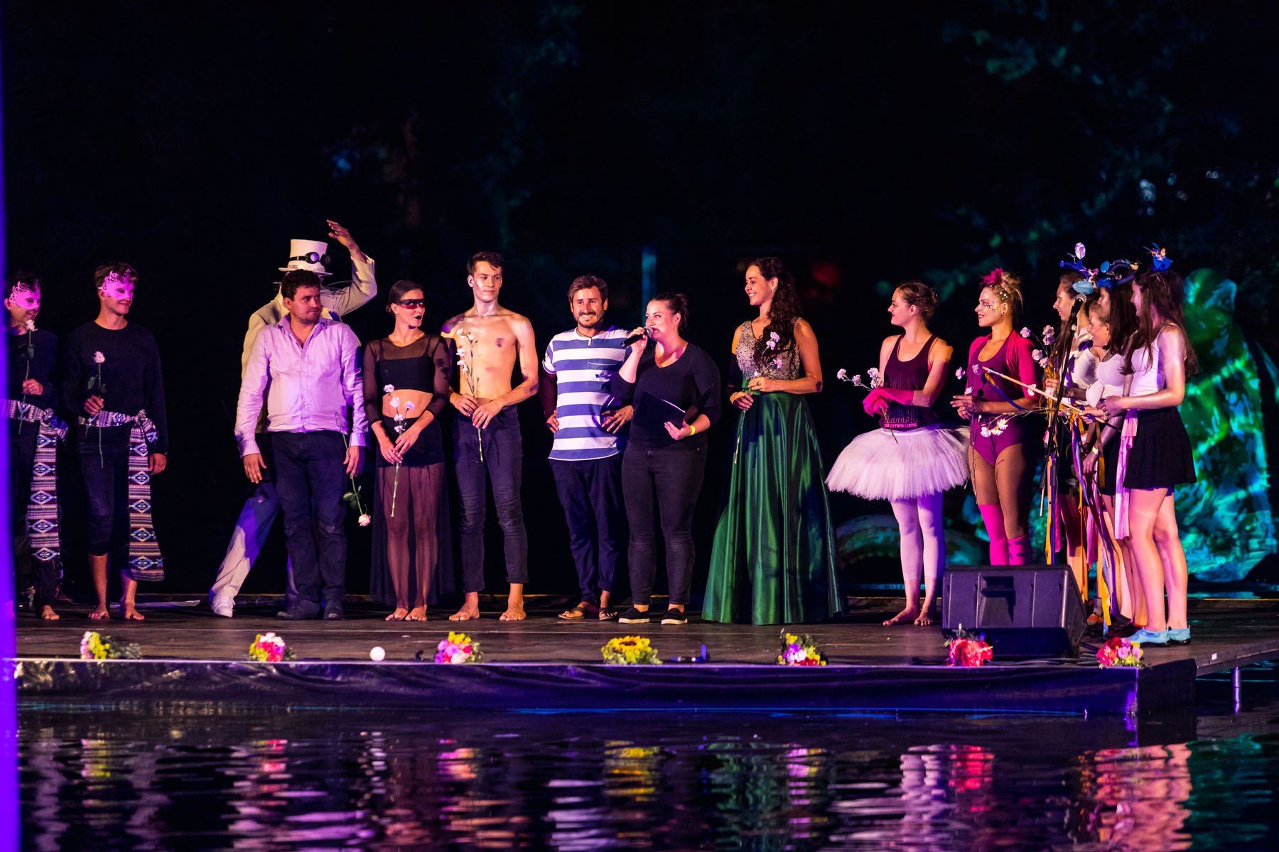 Jezírko ve Smetanových sadech v pátek večer ožilo unikátním festivalem Řeka má duši. Pódium na vodní hladině patřilo divadelnímu představení Alenka v říši divů. Na vodní hladině pod taktovkou režiséra Vladislava Kracíka postupně vystoupily tři desítky umělců: herci, akrobaté, paddleboardisté a tanečníci, mezi kterými nechyběla Mistryně Evropy v šálové akrobacii Lucie Kurnická, mezzosopranistka nominovaná na cenu Thálie Barbora Polášková, tanečnice Michaela Bártková, baletka Moravského divadla v Olomouci Daniela Hanelová. Jednotliví umělci se ve spolupráci s herci Divadla Tramtarie postarali za doprovodu hudby a nápaditých světel o nevídanou podívanou. Divadelní představení bylo orámováno hudebními koncerty a noční dýdžejskou show. Vizuální stránku večera měla na starost Adéla Szturc, hudbu Martin Peřina a světla Honza Machát. "Všem patří velký dík, jsem rád, že se nám i v náročném prostředí parkového jezírka podařilo uskutečnit všechny naše nápady a představy. Vše nakonec fungovalo, jak mělo," konstatoval organizátor festivalu Šimon Pelikán.