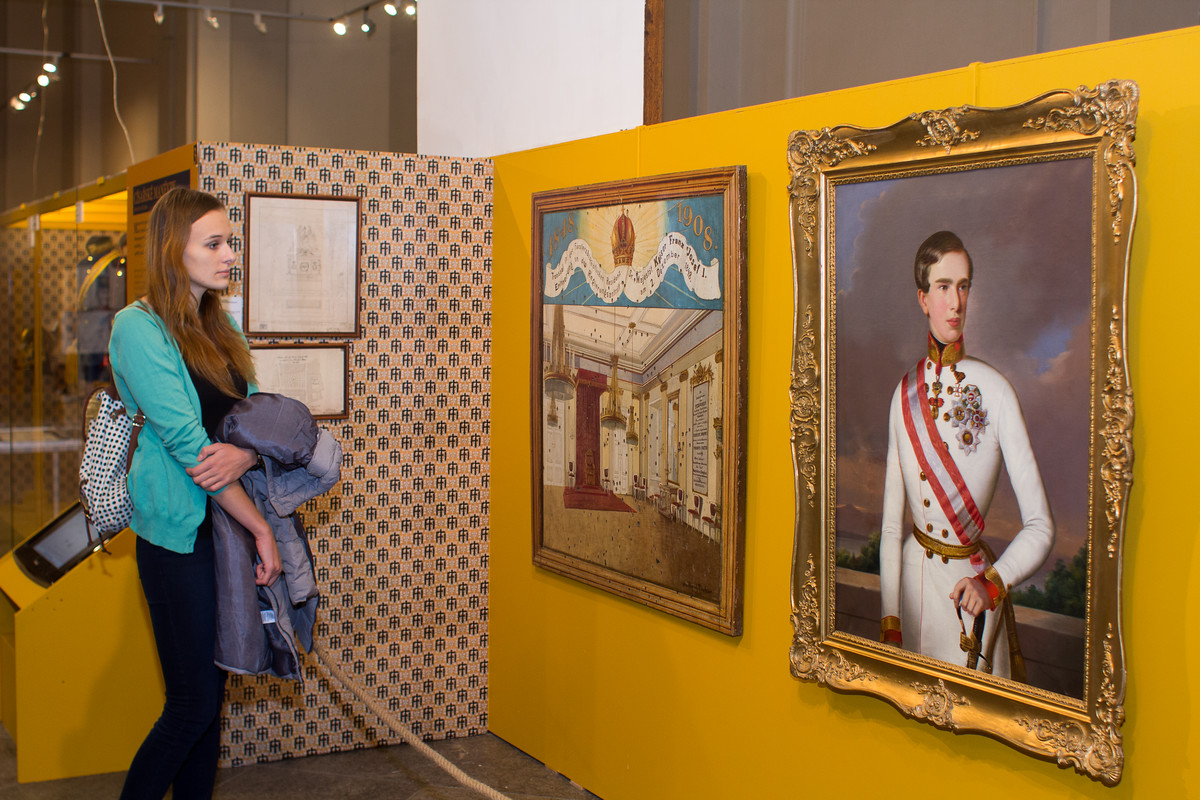 "Kromě průběhu a podoby zmíněných návštěv seznamuje výstava s vybranými aspekty císařova života a prozrazuje, kde František Josef I. při svých pobytech v Olomouci bydlel, jak se bavil, jakou zvěř v okolí Olomouce skolil či jak se zde slavila jeho výročí. Na výstavě najde návštěvník exponáty různého charakteru. Mezi nimi i takové, které dosud nebyly vystaveny a které se vzhledem ke svému účelu a výjimečnému dochování řadí mezi unikáty,“ uvedl ředitel muzea Břetislav Holásek. "Příkladem je soubor průsvitných mozaik používaných ke slavnostnímu osvětlení města ve večerních hodinách. Návštěvník se může těšit také na autentické předměty z osobního majetku císaře jako například na císařův dětský stolek či jeho maršálskou uniformu. Nebudou chybět ani památeční předměty – pero, kterým se císař v Olomouci podepsal, nebo terč, do kterého vystřelil,“ doplnila Markéta Doláková, kurátorka výstavy.