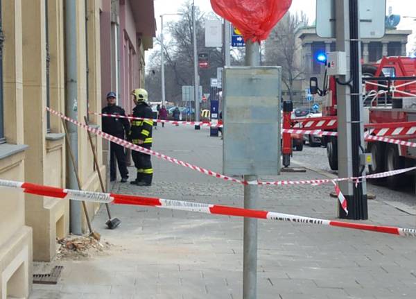 - zřítila se střešní římsa, kdyby místem někdo procházel, neměl šanci