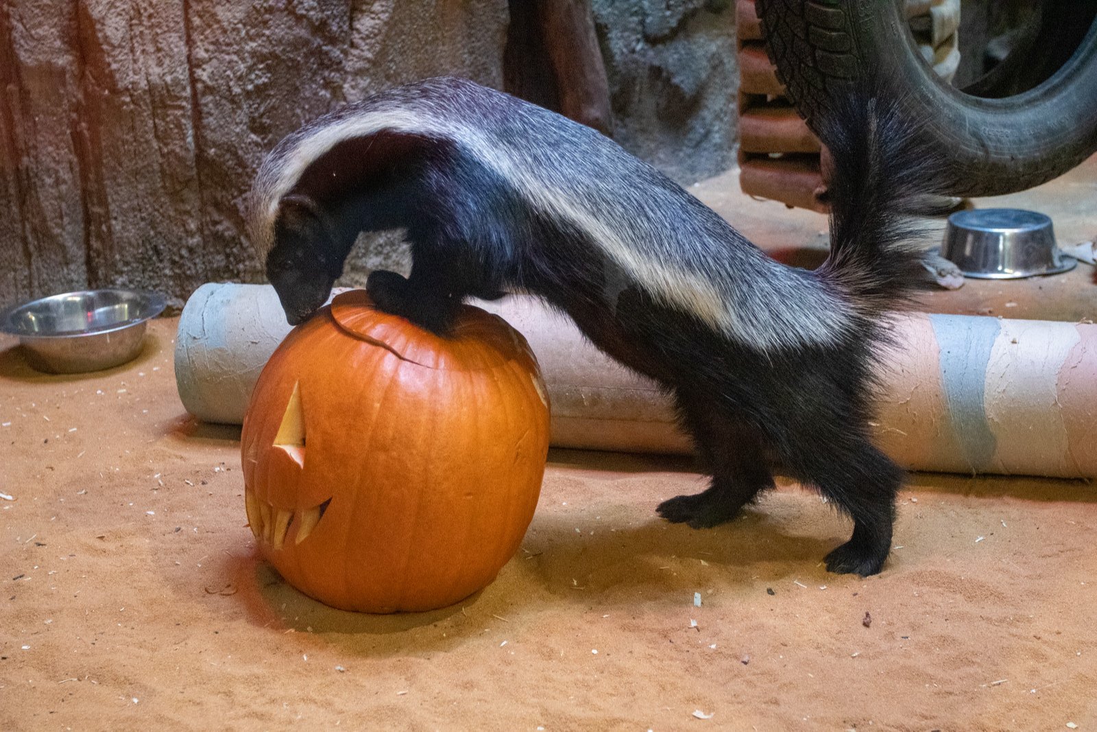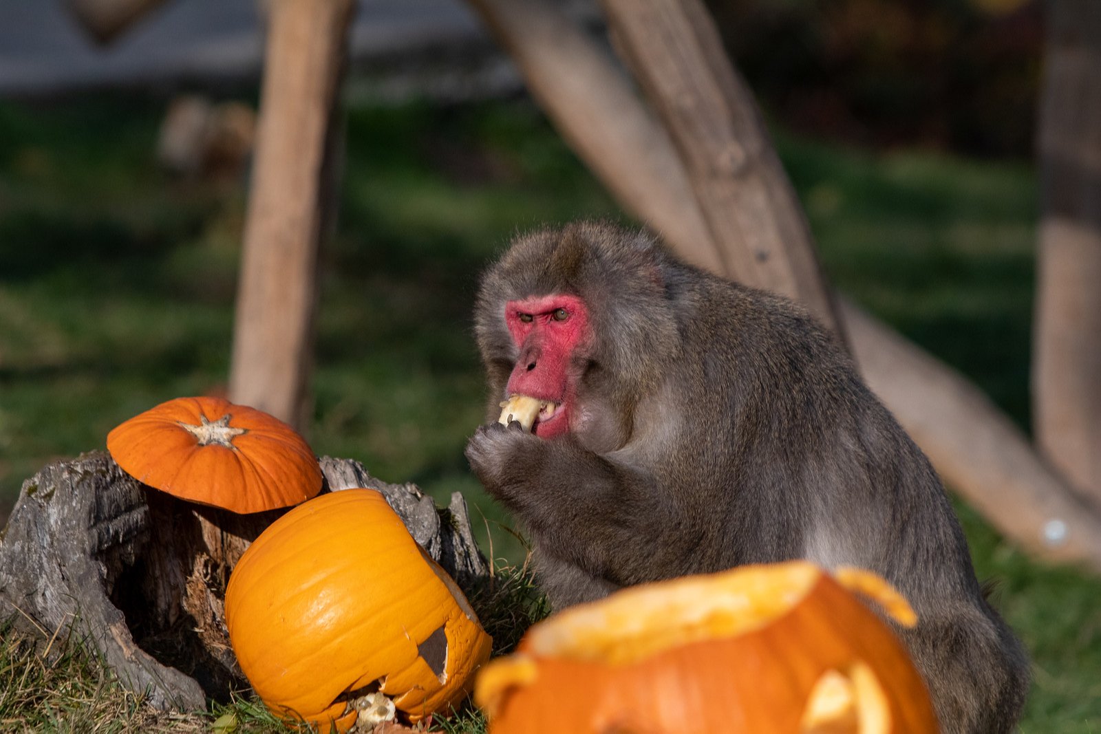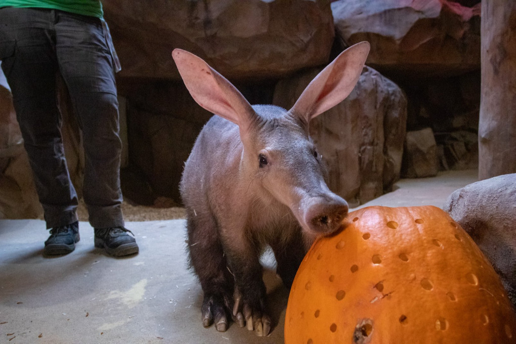 Halloweenské dýně plné pamlsků potěšily zvířata v zoo
