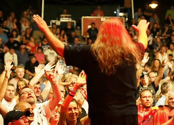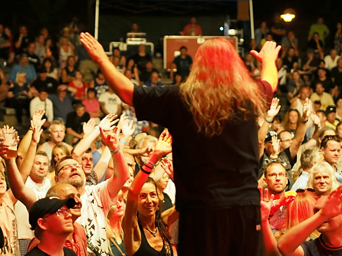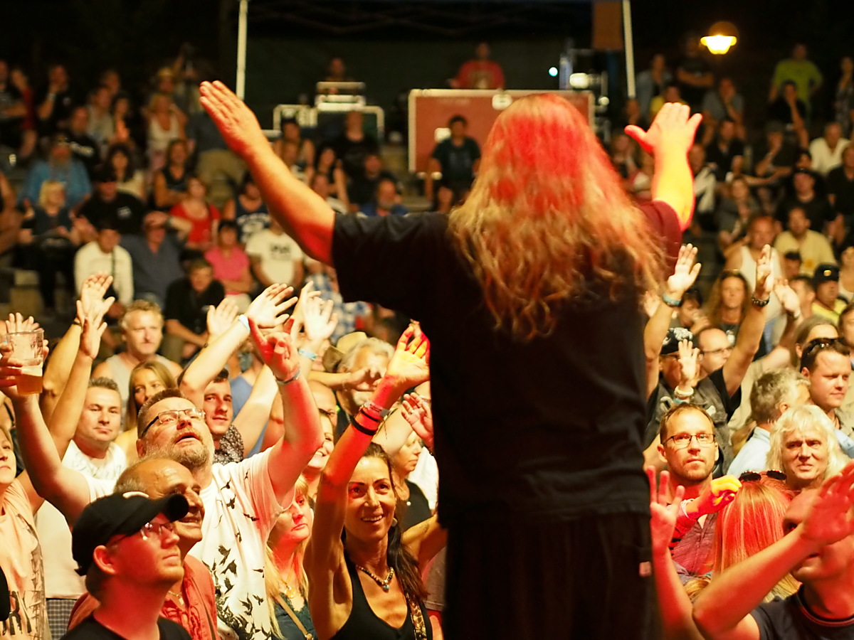 Dalším horkým kamenem byla snad nejživější blues-rocková a hard rocková kapela Krausberry. Frázování a barva hlasu frontmana kapely Martina Krause jsou nenapodobitelné a jeho práce s publikem je ohromující. Z davu si vytáhl tak 9 letého kluka a spolu zazpívali skladbu