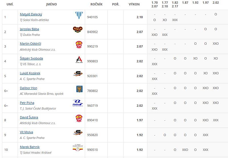 Vítězem Hanácké laťky se stal třiadvacetiletý Matyáš Dalecký z Kolína, který skočil 210 cm. Dalecký se ještě snažil překonat svůj osobní rekord 217 cm, ale laťka třikrát spadla. Jak si cení skalpu Jaroslava Báby?
