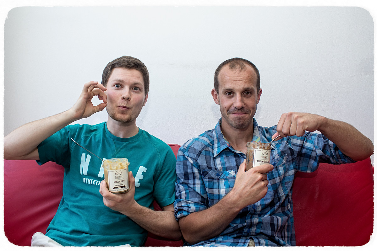 Marek: Ke zdravému životnímu stylu máme oba blízko. Oba sportujeme, chodíme po horách, jezdíme na kolech. Maty se vždycky zase víc zajímal o zdravé pití a celkově o gastronomii. No a mě ta myšlenka vyrábět vlastní máslo napadla, protože jsme oba v Kanadě k těm máslům hodně "přičichli". Konzumuje se tam opravdu hodně, je dobré, chutné a po návratu jsem si tady chtěl koupit třeba mandlové máslo, ale to byl celkem problém. Tak jsem oslovil Matyho, protože má potravinářské vzdělání a víc do toho vidí, navíc jsme kamarádi a Matěj v té době ještě provozoval v Kroměříži hospodu. Pobavili jsme se o tom a rozhodli se jít do toho, tehdy ještě se dvěma produkty, což byly raw mandle a raw arašídy.