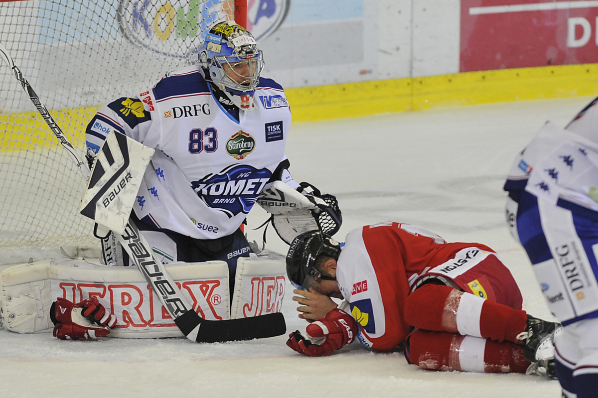 Mora však nesložila zbraně a po jednom z ataků srovnal přesnou střelou obránce Tomáš Valenta, který našel místo nad Faltrovou lapačkou. Oba týmy se pak spokojily s bodem a také v přesilovce už se ani jeden tým do šance nedostal. V nájezdech opět perlil Braňo Konrád, který vychytal střelce Brna a Petr Kafka tak mohl v posledním nájezdu bekhendovým blafákem rozhodnout. Mora vyhrál na ledě Komety 3:2 po samostatných nájezdech. Loni Kohouti s Brnem šestkrát prohráli, letos mají bilanci zatím pozitivní 2:1.