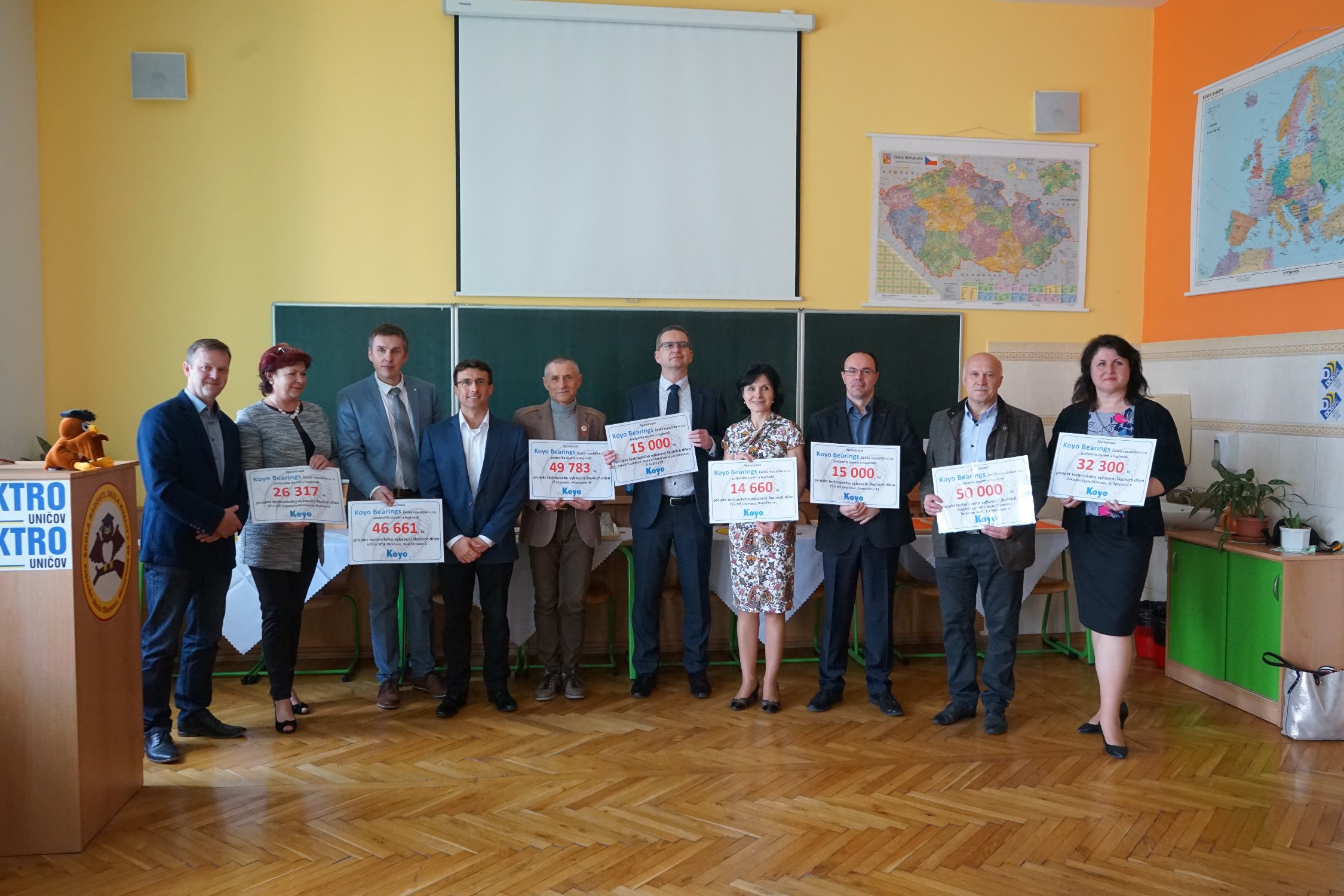 Konec fiskálního roku 2018, který končí firmě koncem března, završilo Koyo finančním darem v celkové hodnotě 250 000 Kč, které firma rozdělila mezi osm olomouckých škol. A právě v pátek 29. března se na ZŠ Mozartova, ve spolupráci s Magistrátem města Olomouce a Krajským úřadem, uskutečnilo slavnostní předání dárkových šeků. "Finanční dary, směřované na obnovu školních dílen, jsou jen částí naší podpory. Školám věnujeme i přebytečný materiál nebo vyřazenou techniku. Žáci, kteří mají možnost si vše vyzkoušet v praxi, mají mnohem lepší představu o tom, jakým směrem se v budoucnu budou ubírat. Já osobně jsem pro zavedení duálního vzdělávání v olomouckém kraji, které by bylo prospěšné především pro větší propojení mezi akademickou a průmyslovou sférou," vyjádřil se ke sponzorskému daru ředitel firmy Petr Novák. Školy si za obdržené peníze pořídí například brusky, vrtačky, pily, ochranné oděvy a mnoho dalších věcí, potřebných pro praktickou výuku žáků. Mezi obdarovanými školami byla i Střední průmyslová škola elektrotechnická, kam firma v lednu 2019 darovala také devět vyřazených počítačů. Školy byly vybrány na základě doporučení Olomouckého kraje a Magistrátu města Olomouce. Cílem bylo vybavit školy, kde je aktivní přístup k dílenské výchově a zároveň je potřeba tyto dílny hmotně dovybavit.