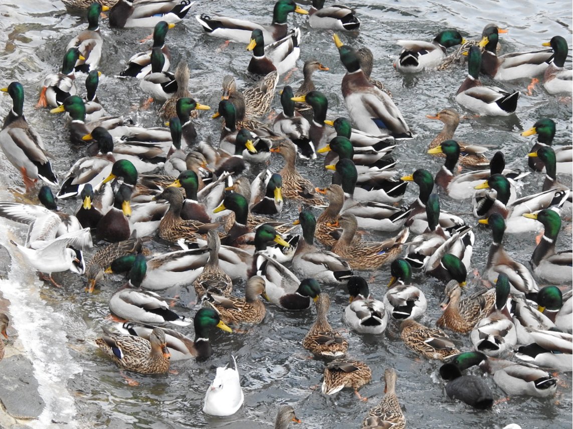 Vodní ptáci, kteří přilétají na městská zimoviště za potravou, jsou většinou labutě velké a kachny divoké. "Ojediněle i o lysky černé, racky chechtavé, bouřní a bělohlavé, poláky velké nebo chocholačky, hvízdáky, ostralky nebo kachničky mandarínské," uvádí místopředseda Moravského ornitologického spolku Jiří Šafránek a doplňuje, že nejvhodnější potravou pro vodní ptáky jsou semena pšenice, loupaný oves nebo kukuřice, slupky jablek a zbytky listové zeleniny.