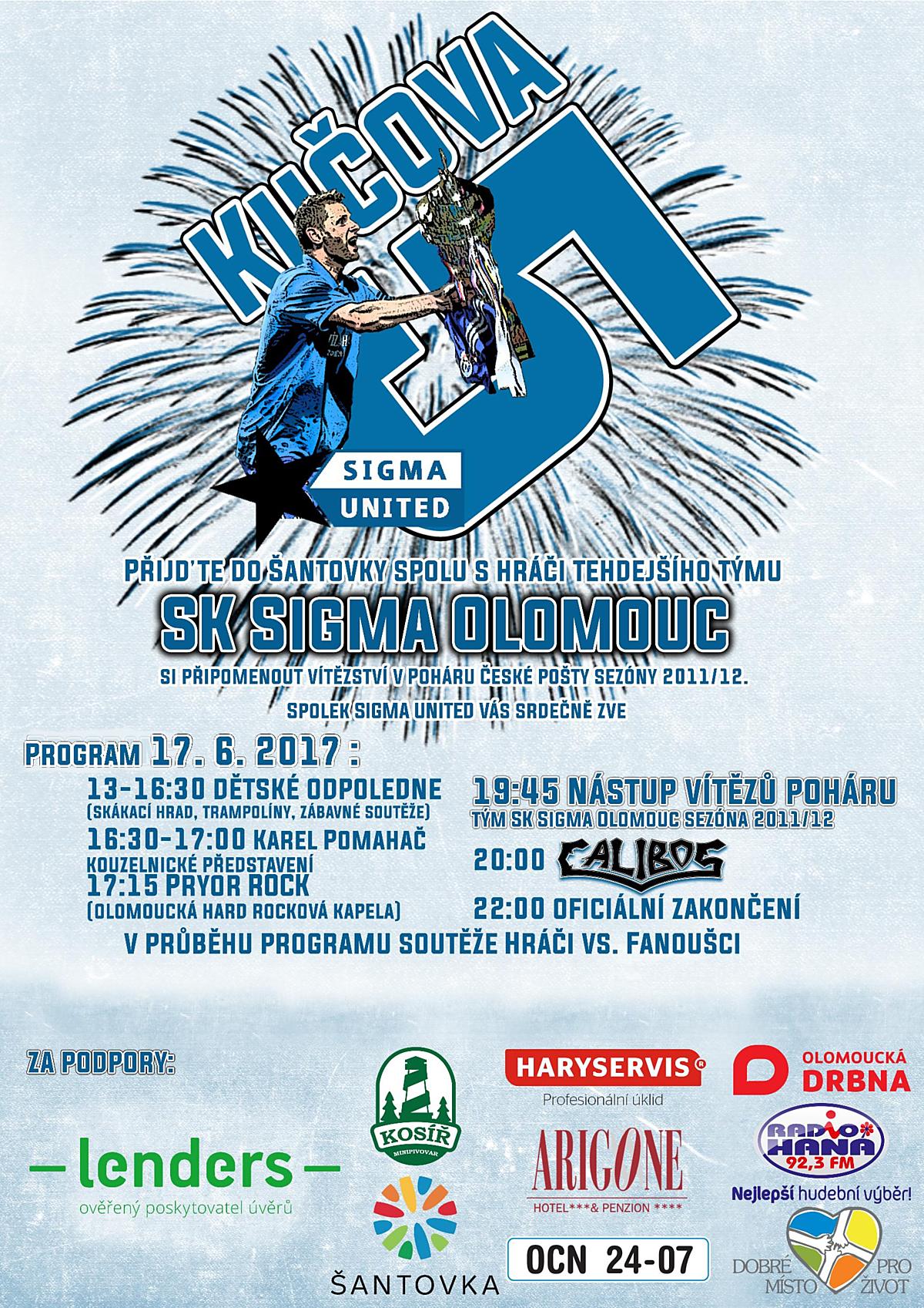 V roce 2012 ve finále Českého poháru porazili Spartu Praha 1:0 gólem Michala Vepřka. V těchto dnech uplynulo půlkulaté výročí od těchto slavných okamžiků, a proto se sdružení fanoušků Sigma United ve spolupráci s bývalým kapitánem Radimem Kučerou rozhodlo uspořádat vzpomínkovou akci Kučova pětka za účasti hráčů tehdejšího týmu i trenéra Petra Uličného. Proběhne v sobotu 17. června od 13 hodin v areálu obchodní galerie Šantovka.