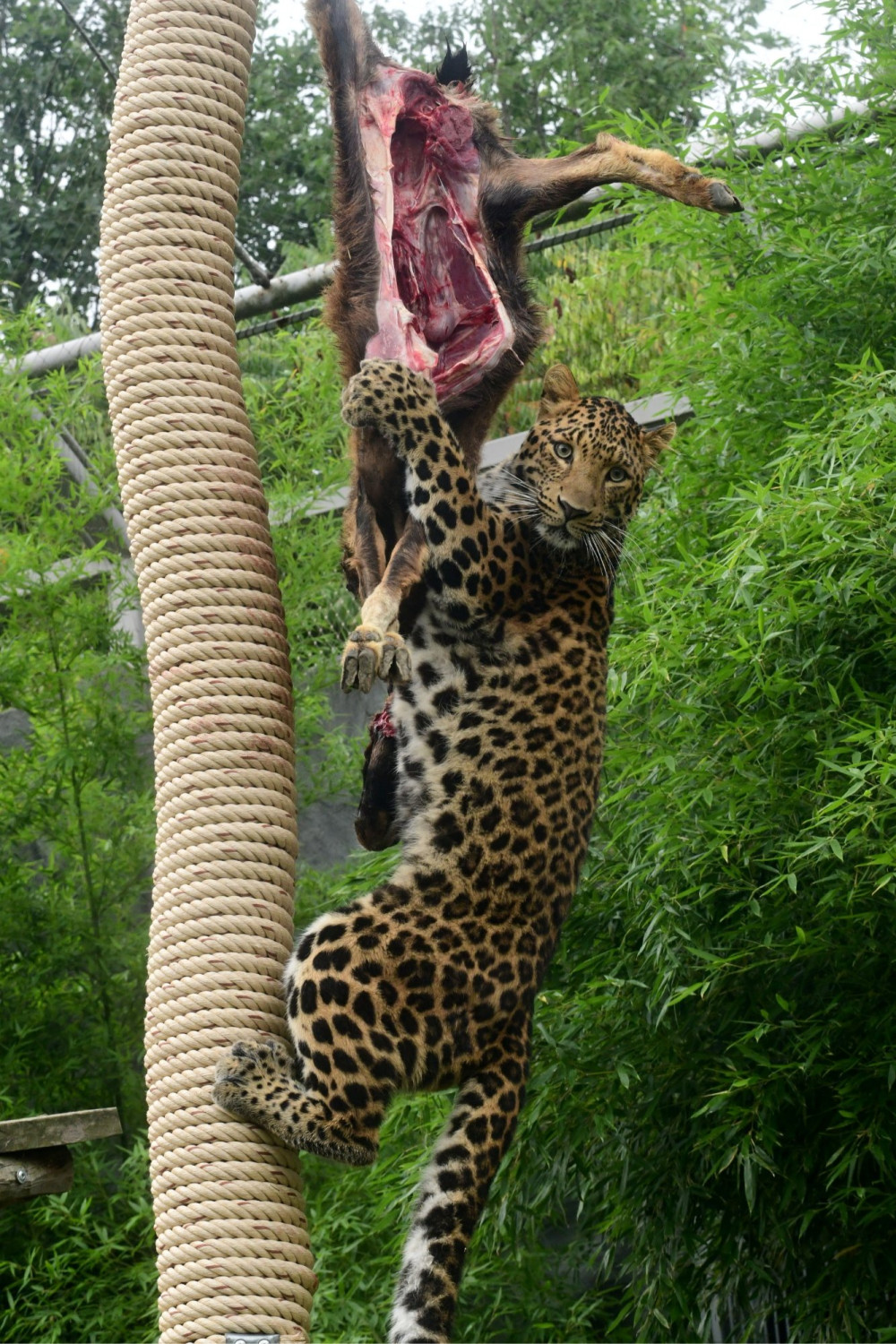 „A právě pro levharty čínské připravili ošetřovatelé velkou hostinu v podobě kozy bezoárové. Tu zavěsili usmrcenou na kladku, aby levharti museli při jejím dobývání uplatnit své přirozené instinkty spojené s lovem. Současně se tak naplnil význam slova enrichment, což je činnost směřující k obohacení života zvířat, která jsou chována v lidské péči,“ uvádí zooložka Ing. Jitka Vokurková.