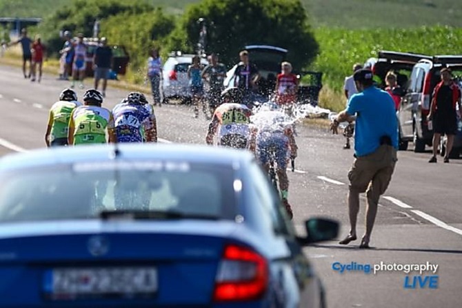 Mapei Merida Kaňkovský měl na trati podporu týmu sedmi lidí, kteří se starali o občerstvování a svlažení v obrovském horku.
