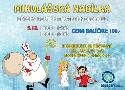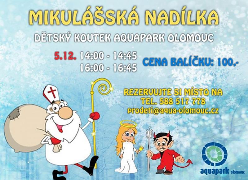 - Sobota / 14:00 – 14:45; 16:00 – 16:45 / Mikulášská nadílka / Aquapark Olomouc