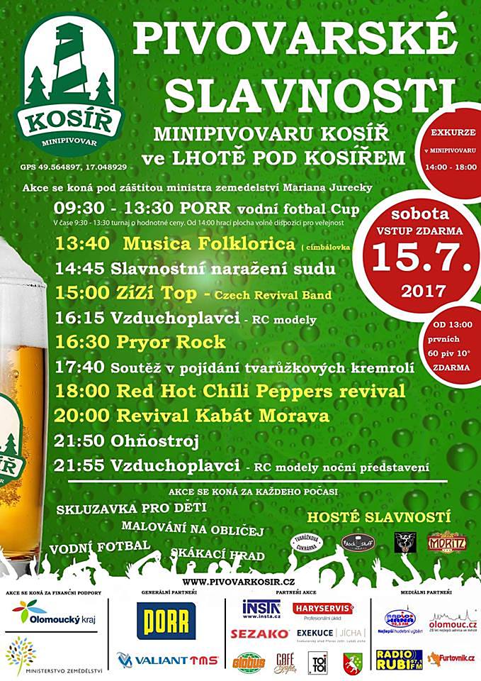 Už v sobotu 15. července se v areálu Minipivovaru Kosíř ve Lhotě pod Kosířem konají Pivovarské slavnosti. Vedle ochutnávek piva z místní produkce se návštěvníci mohou těšit na bohatý doprovodný program, kapely i ohňostroj. Vstup na akci je zdarma.