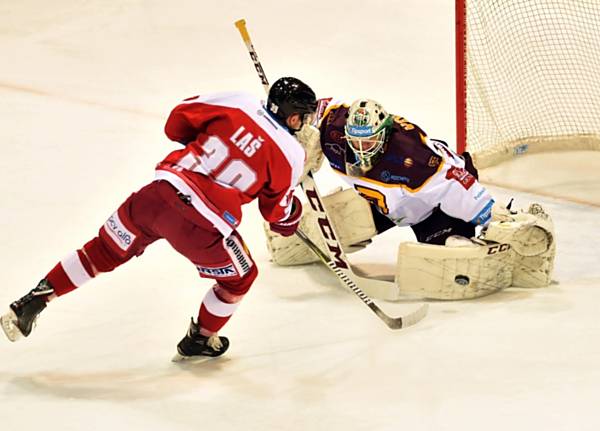 Útoční HC Olomouc Marek Laš tuto obrovskou možnost v oslabení neproměnil.