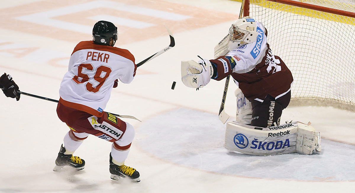 Matěj Pekr se objevil před brankářem Sparty Praha Janem Lukášem.
