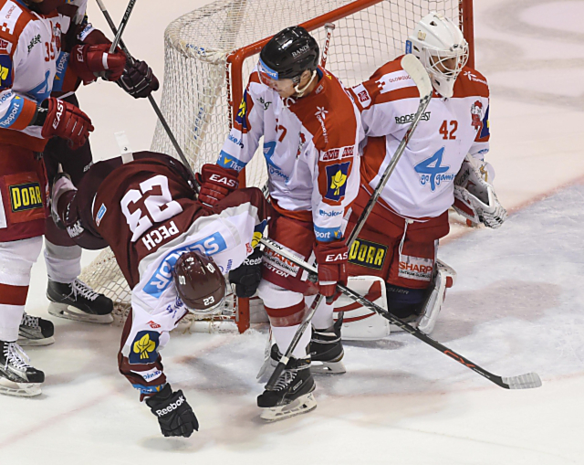 Důraz Kohoutů před Konrádem. Rašner ukázkově odklízí Pecha.