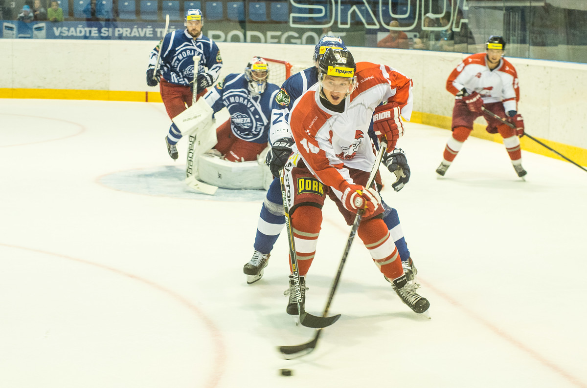 V nájezdech si už ale Hanáci díky gólům Holce a Kafky se soupeřem poradili. Tomáš Vošvrda propustil jen jeden nájezd Kanaďana Courchaina.