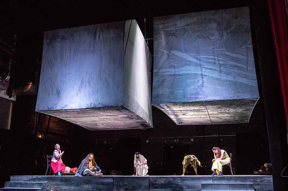 Autorem variabilní scény, která se v průběhu představení mění z vesnice na pustinu, je architekt Milan Nytra, hudebním fanouškům známý jako člen populární skupiny Buty. S monochromatickou scénou kontrastují výrazné barevné kostýmy z dílny Jany Prekové. Výtvarnice našla inspiraci v díle německého malíře Neo Raucha. „V oblečení bohatých vesničanů je patrná barevná divokost, exotičnost. Uprchlíci mají soudobé kostýmy. Je to sice současnost, ale stylizovaná a trochu zastřená,“ uvedl Pitínský.