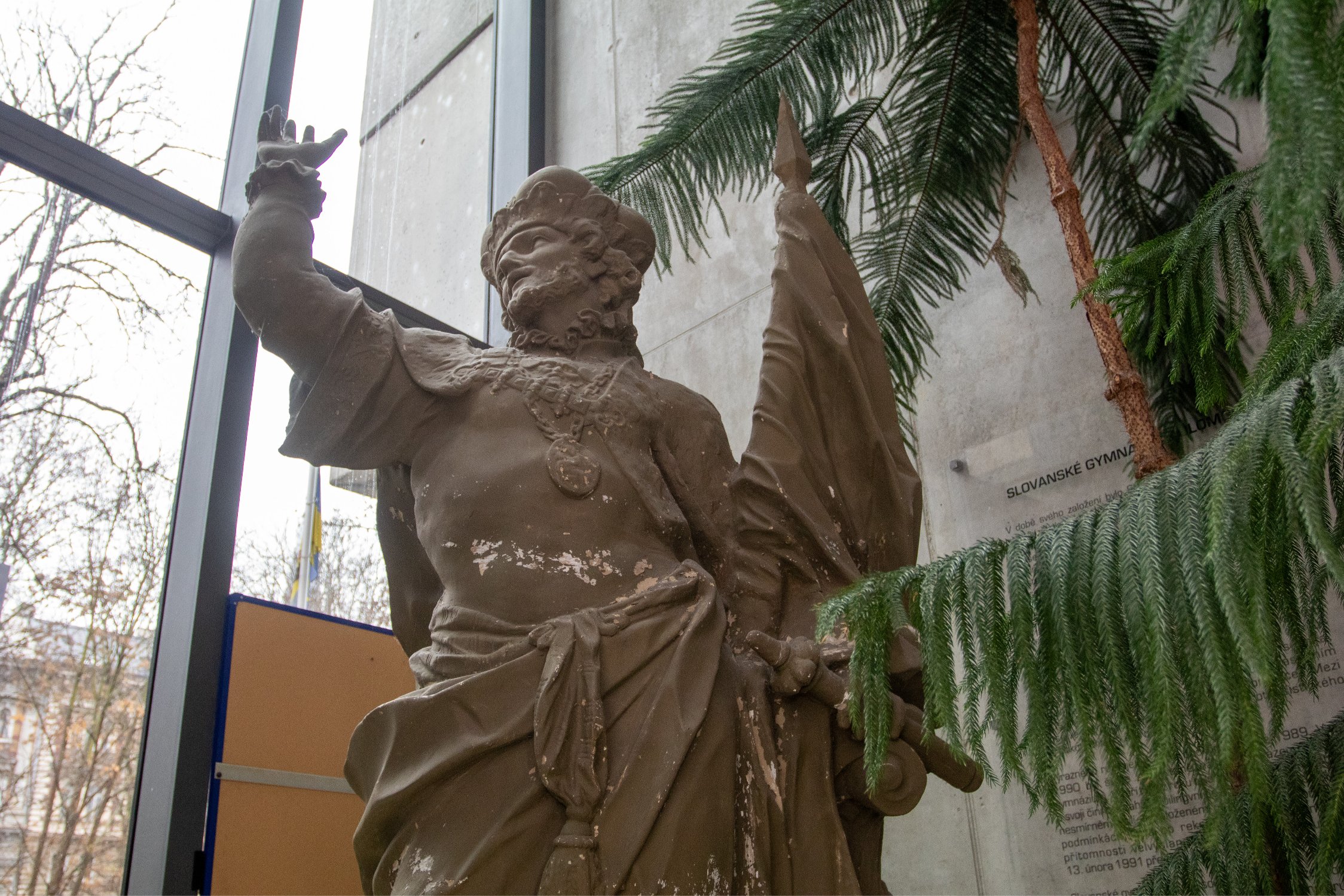 Muzeum restauruje kopie soch z Trojice. Stojí na chodbách Slovanského gymnázia