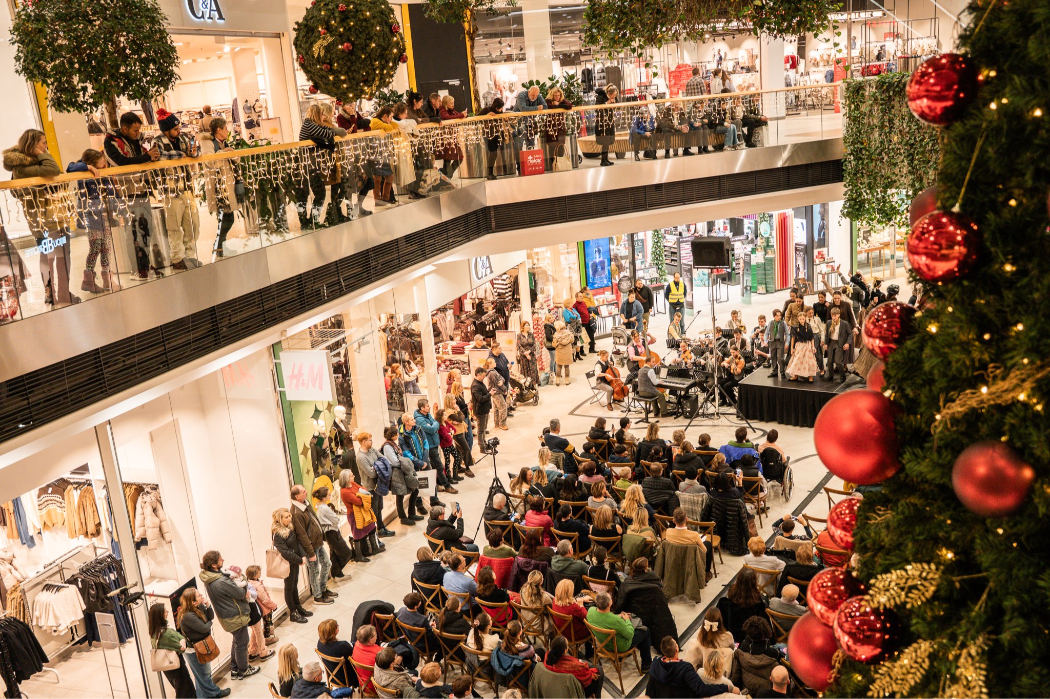 V 18 hodin se centrální prostor Galerie Šantovka proměnil v jeviště plné světel, hudby a energie. Studenti pod vedením pedagogů a za doprovodu živého orchestru předvedli vlastní adaptaci světově známého muzikálu My Fair Lady. Na pódiu vystoupily desítky účinkujících včetně dětského pěveckého sboru Andromeda a speciálního hosta – Romana Vencla z Moravského divadla Olomouc, který ztvárnil roli Alfréda Doolittla.